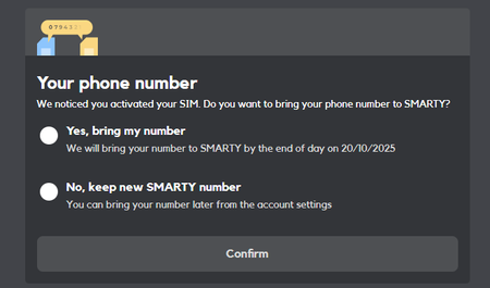 I don't want to select wrong option and lose my number but I need to select an option and confirm choice to get rid of this question on my dashboard. I've been with SMARTY since September 2023. I moved my number from previous provider with me. Now my dashboard has a box saying: we noticed you activated your sim. Do you want to bring your phone number to SMARTY? Option 1: yes bring my number. We will bring your number by end of day on 08/07/2024 Option 2: no keep new SMARTY number. You can bring your number later from account settings. I'm worried either option might be wrong and lose me my number. I already brought my number, so what number would they be bringing under option 1. And I want to keep my existing smarty number which is the number I already brought. Which option to pick?Solved3.6KViews1like7CommentsURGENT: SMARTY is failing now, time to move to ID